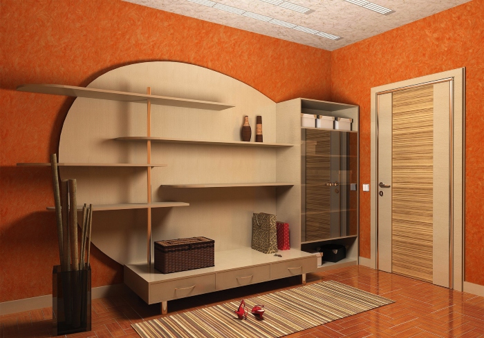 Рідкі шпалери в інтер'єрі передпокою – рішення не тільки ефектне, але і практичне. Тим більше, що покриття можна розкрити акриловим лаком, і воно набуде підвищену вологостійкість. Якщо ж ви залишите рідкі шпалери в «природному» стані, то в будь-який момент зможете оновити покриття, прибравши найбільш забруднені або витерті ділянки.